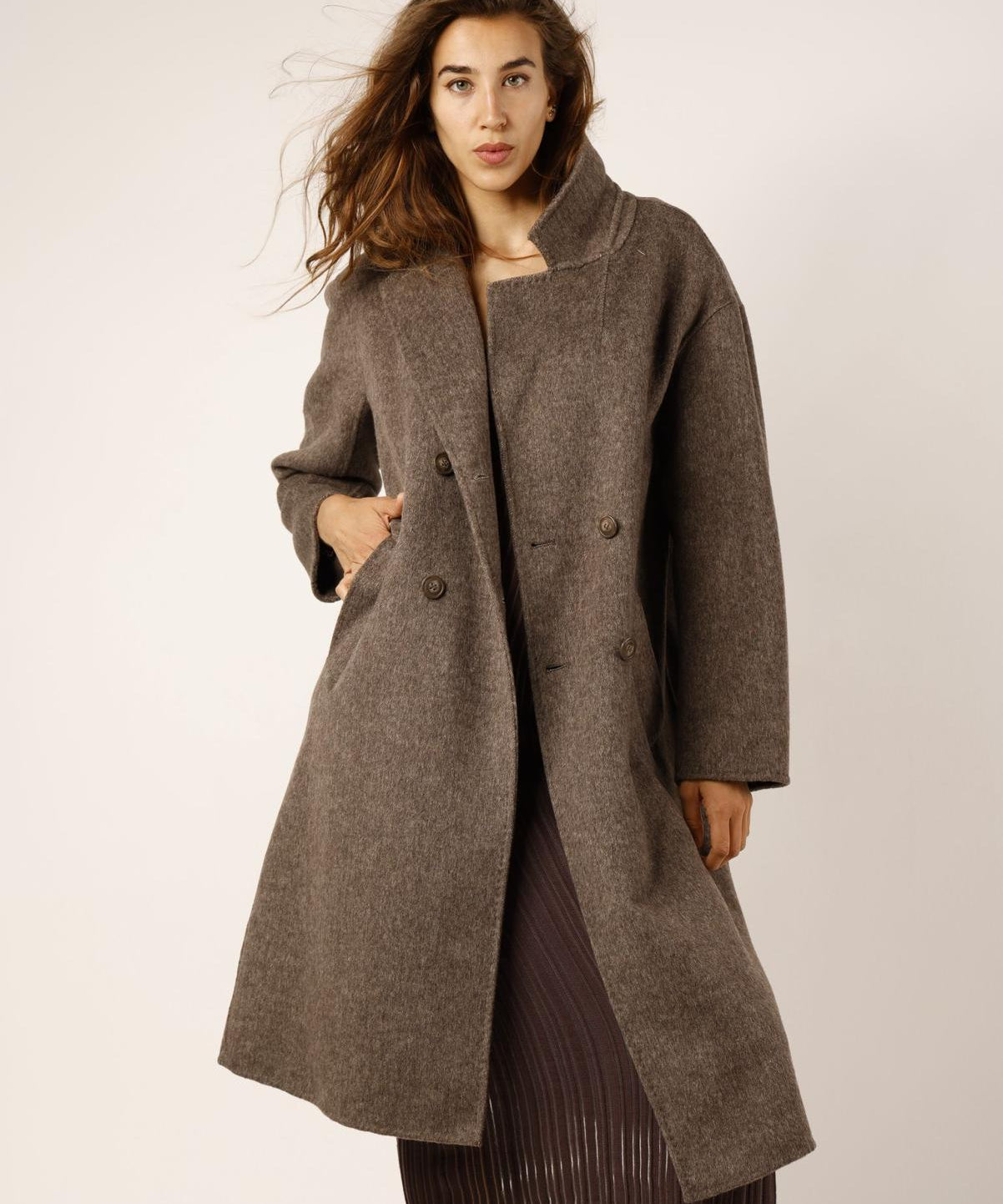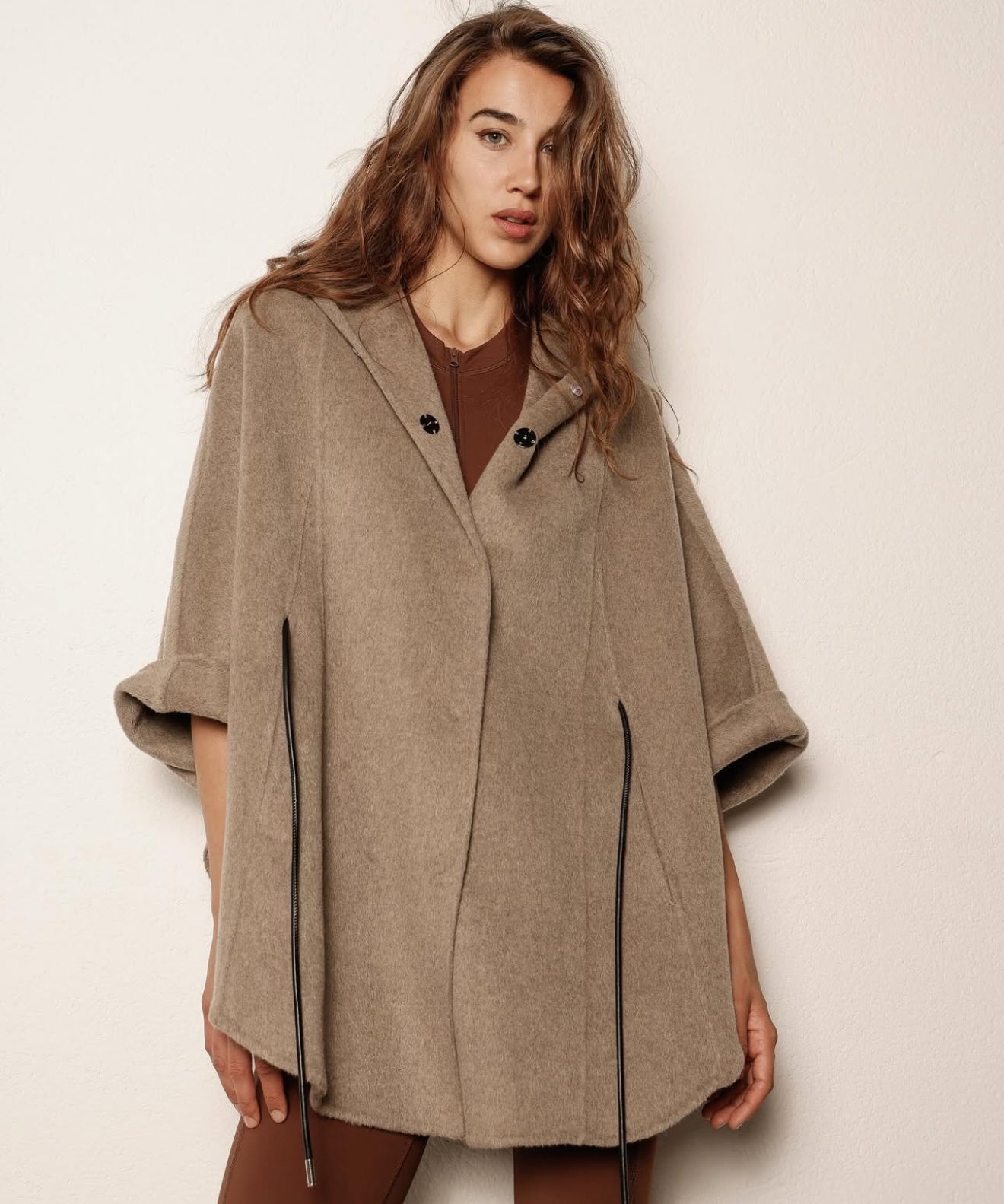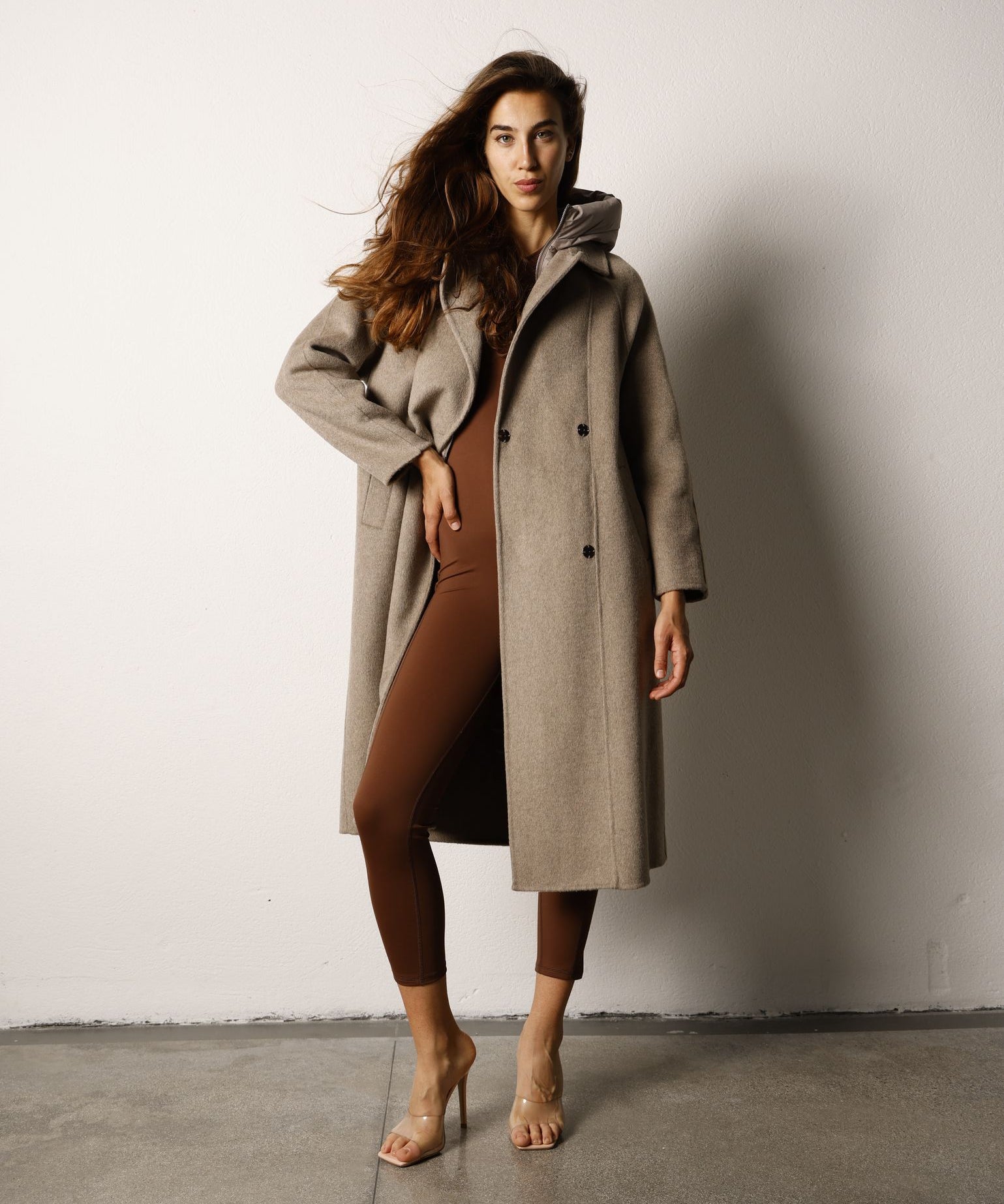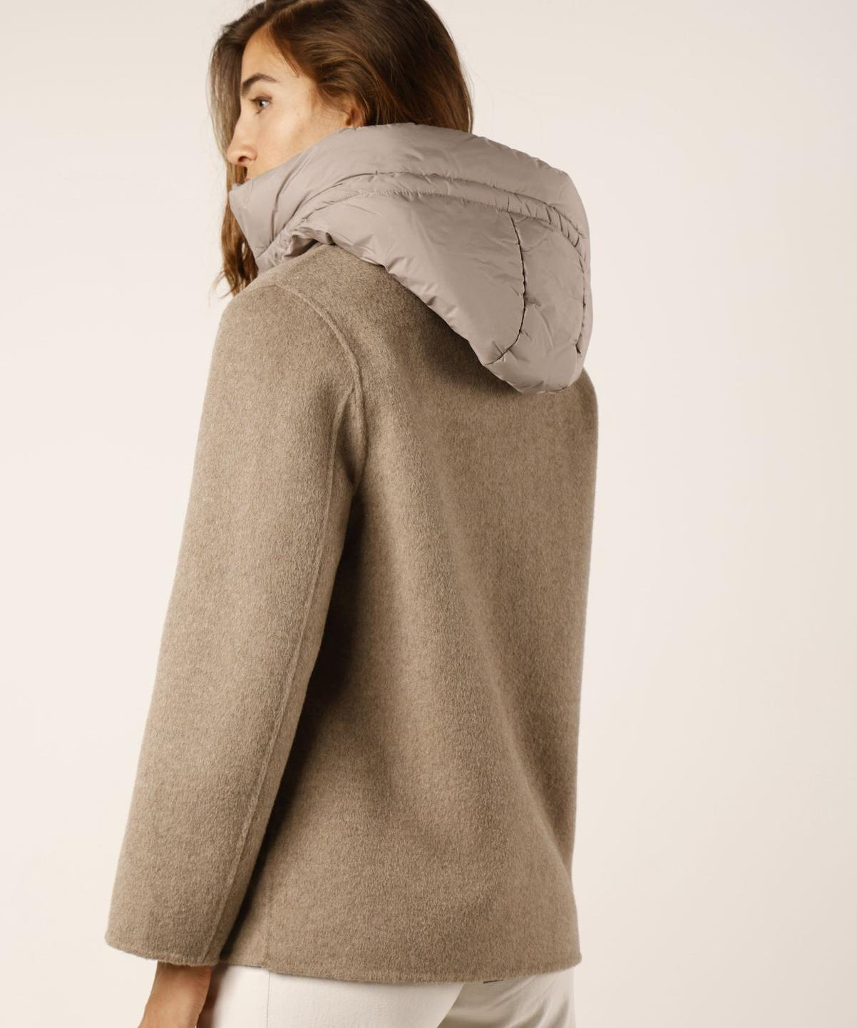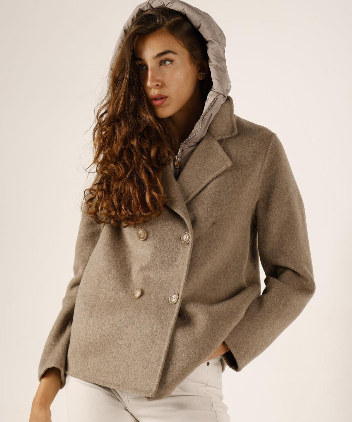 Cappotto corto doppiopetto con cappuccio rimovibile