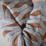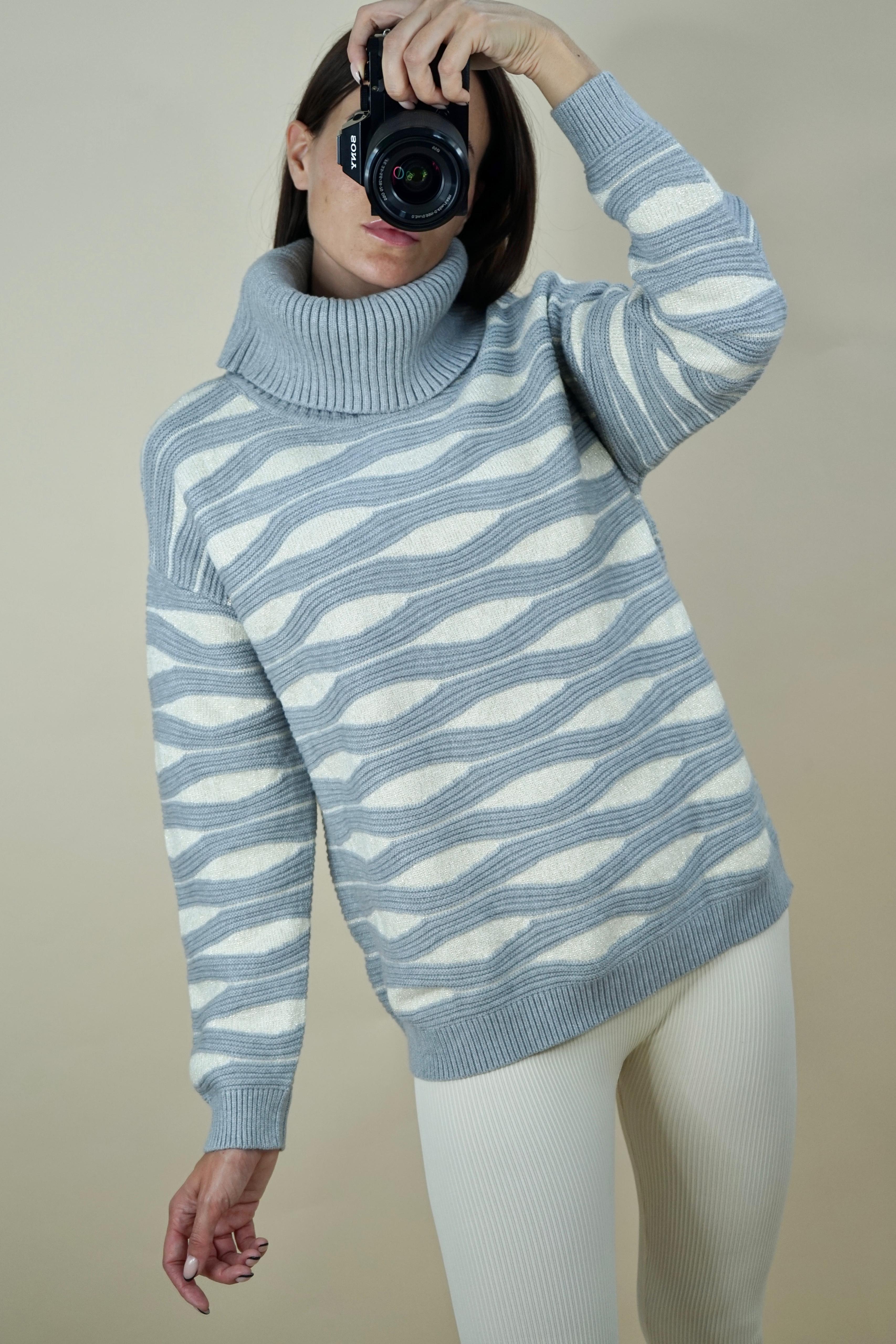 Dettagli: Collo dolcevita a coste, motivo a righe ondulate, lavorazione in maglia chunky