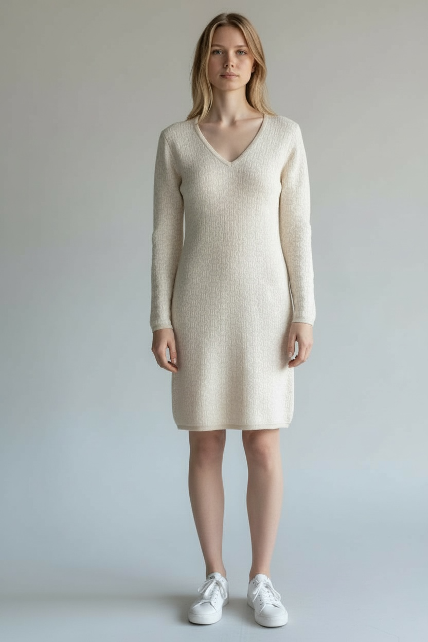 Abito lungo in maglia con scollo a V