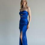 Abito lungo strapless blu