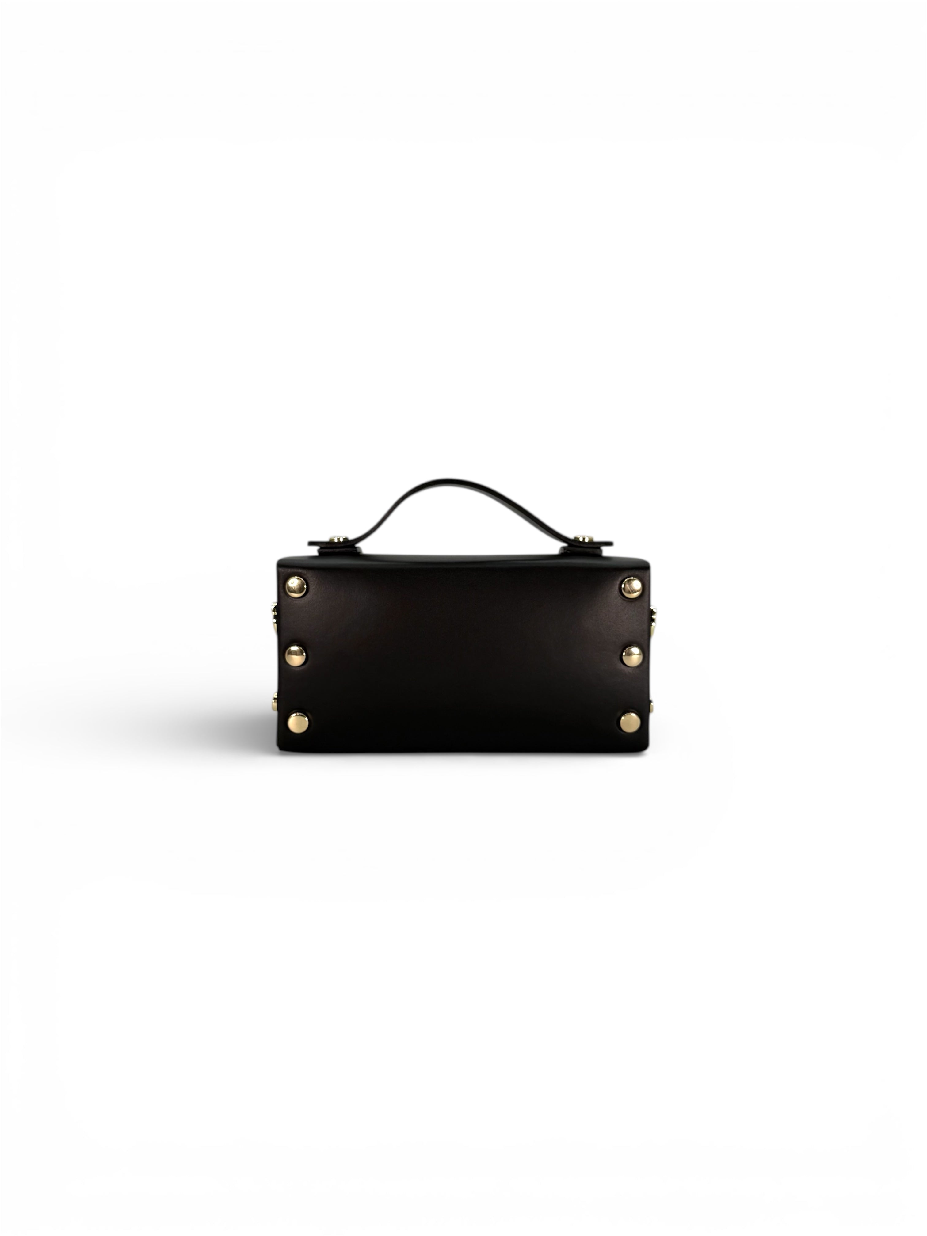 Borsa compatta e strutturata dal gusto elegante e senza tempo, realizzata in 100% pelle e prodotta in Italia. Il design rettangolare è valorizzato dal manico superiore e dalla chiusura con patta, impreziosita da dettagli metallici tono oro che aggiungono un tocco luxury. Il logo è discretamente impresso sulla patta, mentre i piccoli dettagli metallici laterali contribuiscono a definire una struttura solida e curata. La tracolla inclusa consente di indossare la borsa anche a spalla o crossbody, garantendo massima versatilità.