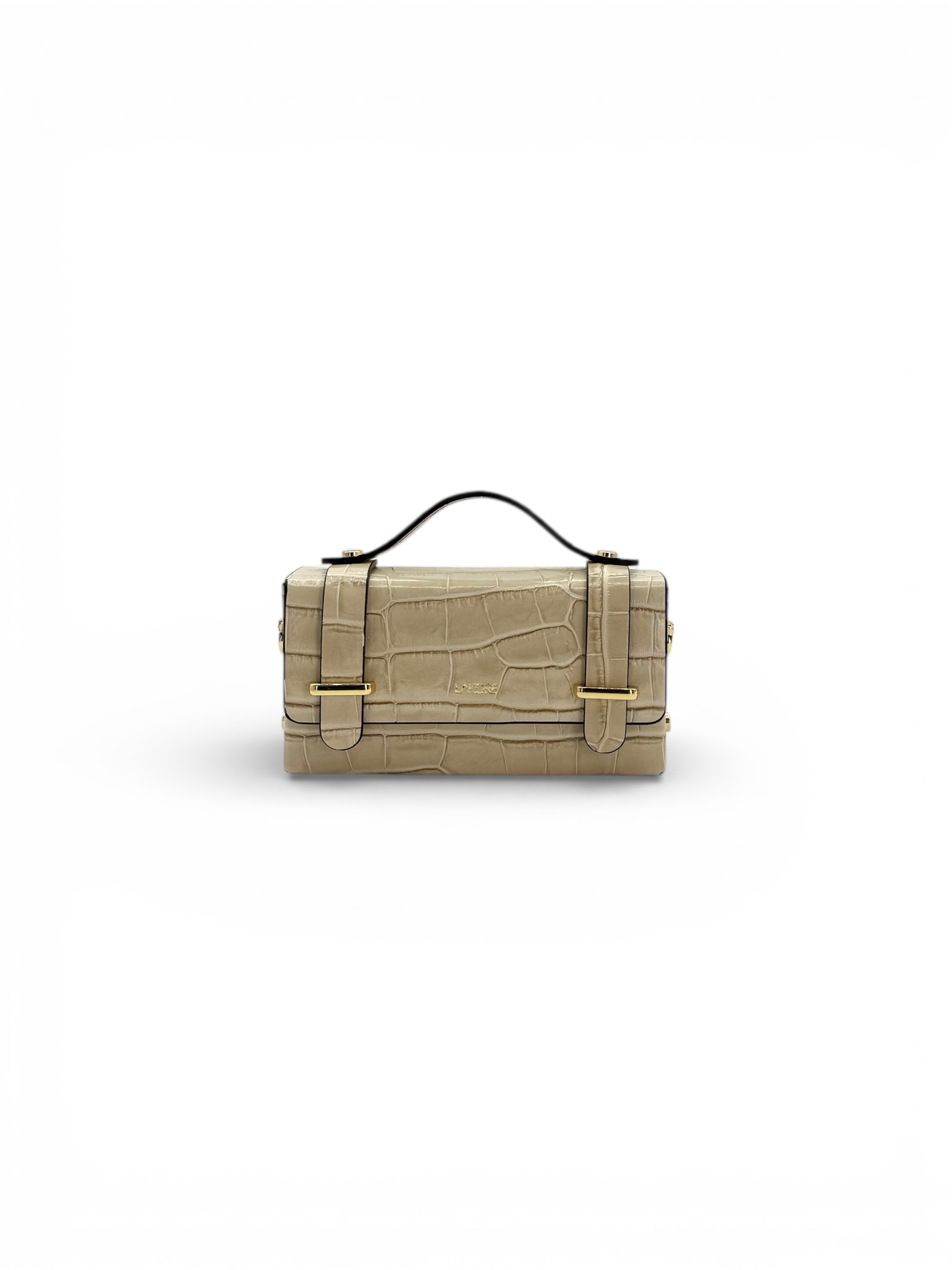 Borsa compatta e strutturata dal gusto elegante e senza tempo, realizzata in 100% pelle con stampa coccodrillo e prodotta in Italia. La finitura lucida e l’effetto coccodrillo donano al modello un carattere deciso e raffinato, perfetto per completare look sia formali che serali.