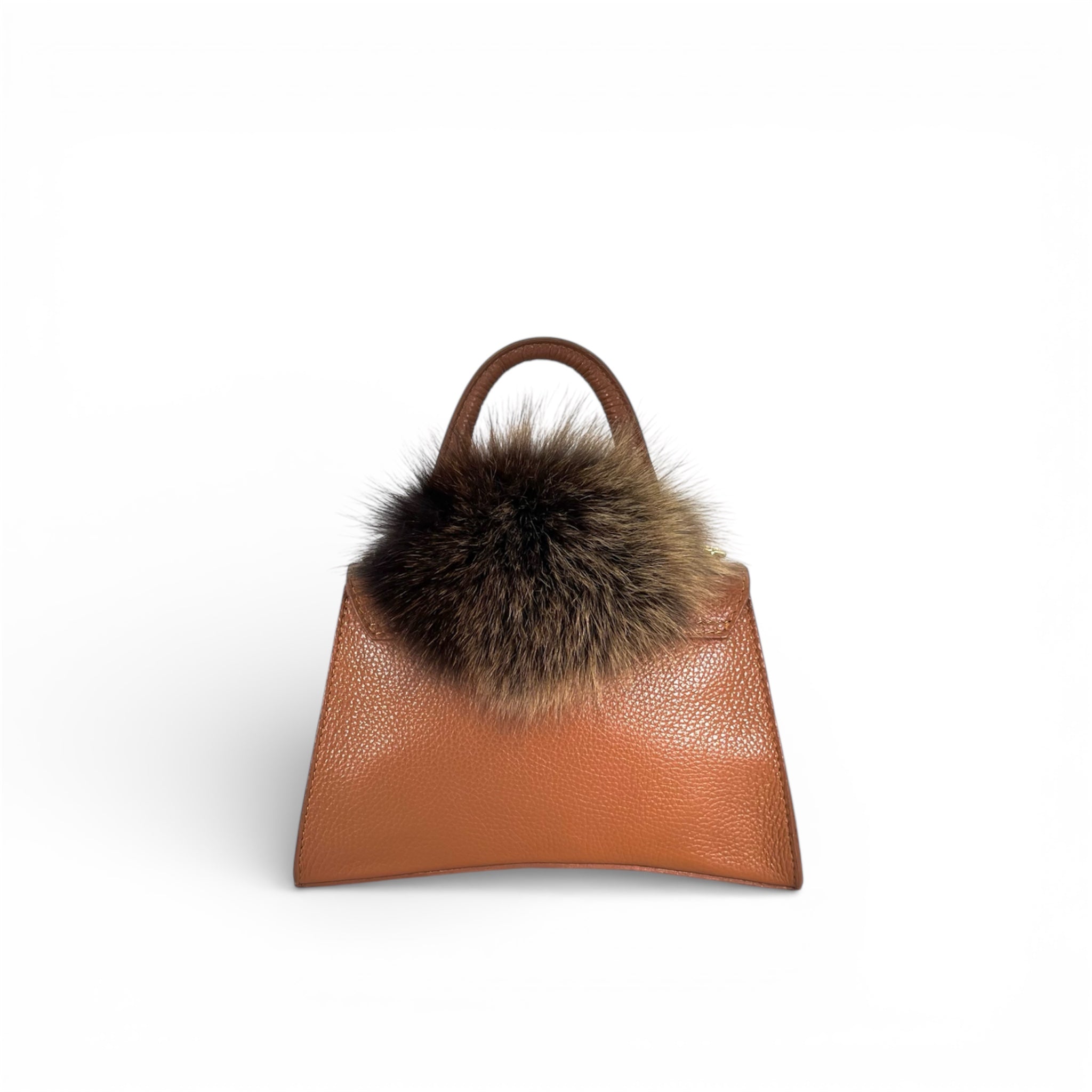 Borsa Top Handle dal design strutturato ed elegante, realizzata in 100% pelle e prodotta Made in Italy. La silhouette trapezoidale e compatta è valorizzata dalla presenza di vera pelliccia, che aggiunge un tocco sofisticato e distintivo, rendendo il modello un autentico pezzo statement.