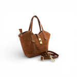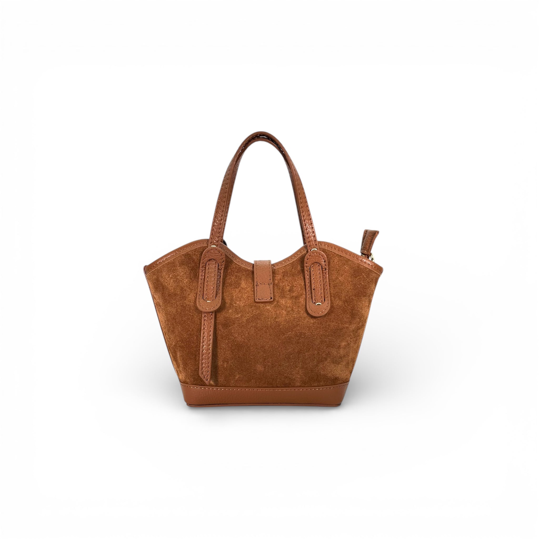 Borsa Tote dal design strutturato ed elegante, realizzata in 100% pelle e prodotta Made in Italy. Il corpo principale è in pelle scamosciata morbida e vellutata, mentre la base, i profili e i manici sono rifiniti in pelle liscia a contrasto, per un perfetto equilibrio tra raffinatezza e resistenza.