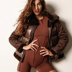 Modello: Giacca bomber montone con pannelli effetto piumino